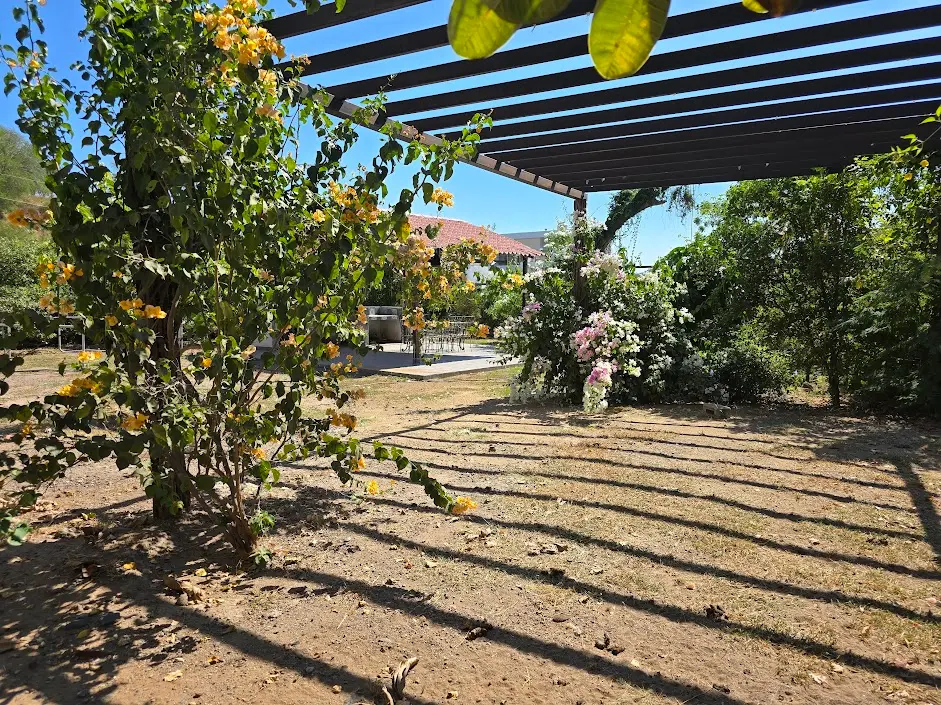 Alberca, palapas y asadores